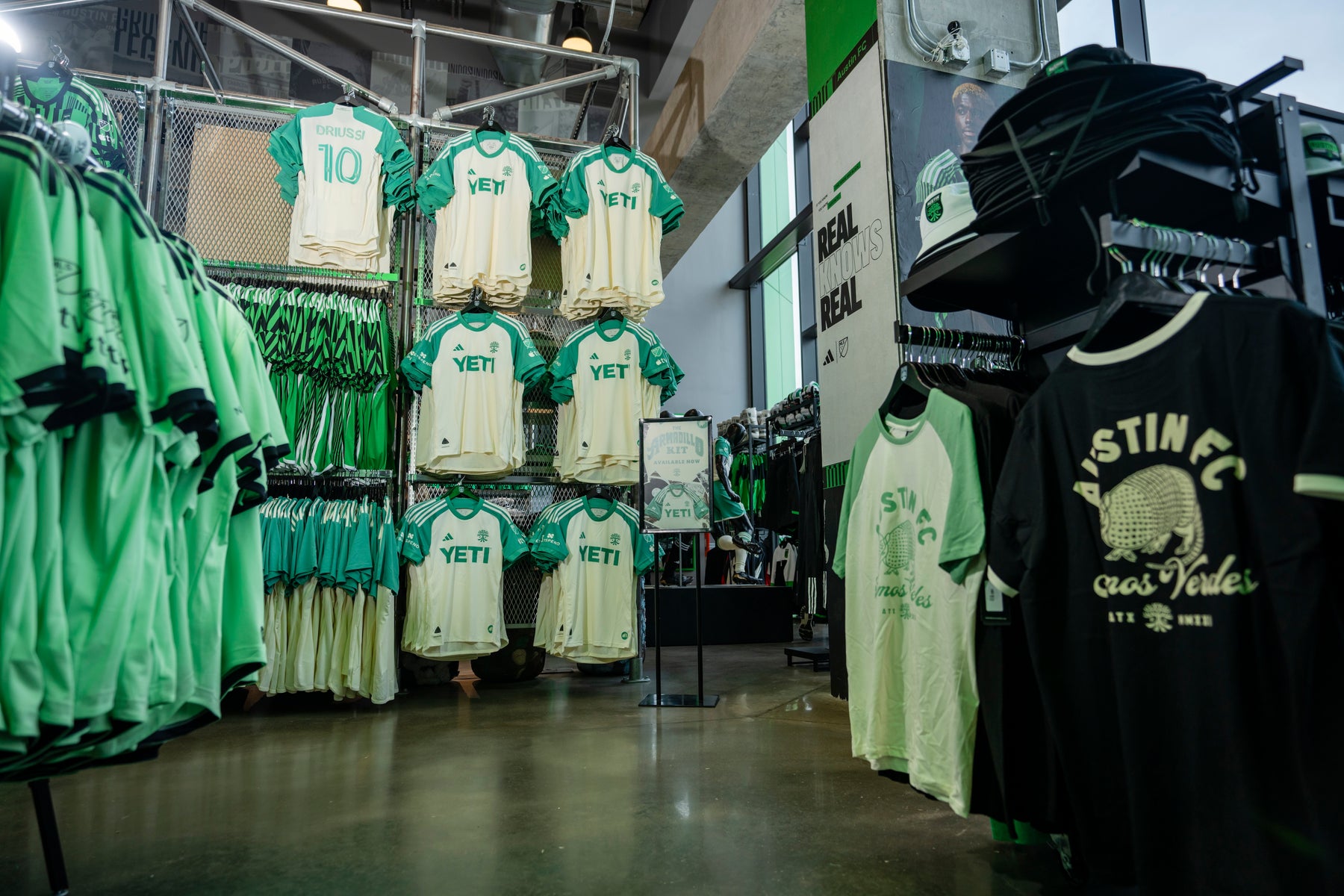 The VERDE Store, located at Q2 Stadium, is open daily from 10AM - 6PM. The store offers the widest range of Austin FC merchandise available online or in-person, including a range of limited edition and rotating team apparel only available in The VERDE Store. It is the destination for Austin FC jerseys, shirts, hats, and more. The VERDE Store includes a one-of-a-kind YETI in-store experience, featuring a dedicated footprint which periodically launches custom YETI / Austin FC co-branded products. Jersey customization and YETI engraving is available on-site.